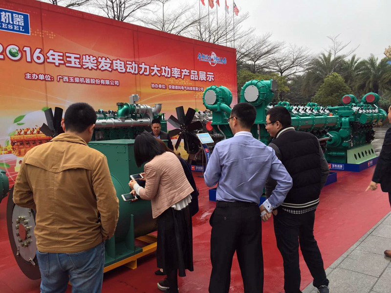 会议现场,玉柴的YC16VC、YC12VC两大系列发动机产品图、技术参数纷纷揭开神秘面纱。据了解,上述两大系列产品是玉柴耗费近6年时间倾力打造的高性能卓越动力,具有调速性能优、加载能力强、节能环保、可靠性高、体积小、重量轻等优点。新产品的优越性能,吸引了大家的眼球。作为重要协办方,米兰网_米兰(中国)电气全程参与了推介会进程,并携两款大功率EvoTec发电机产品在现场亮相,以结构独特、外观靓丽等特点获得了在场嘉宾的高度赞许。